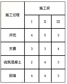 某基礎(chǔ)工程包括開挖、支摸、澆筑混凝土及回填四個(gè)施工過程,分3個(gè)施工段組織流水施工,流水節(jié)拍見下表,則該基礎(chǔ)工程的流水施工工期為( )天。