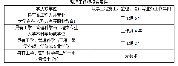 監(jiān)理工程師報名條件:放寬工作年限要求