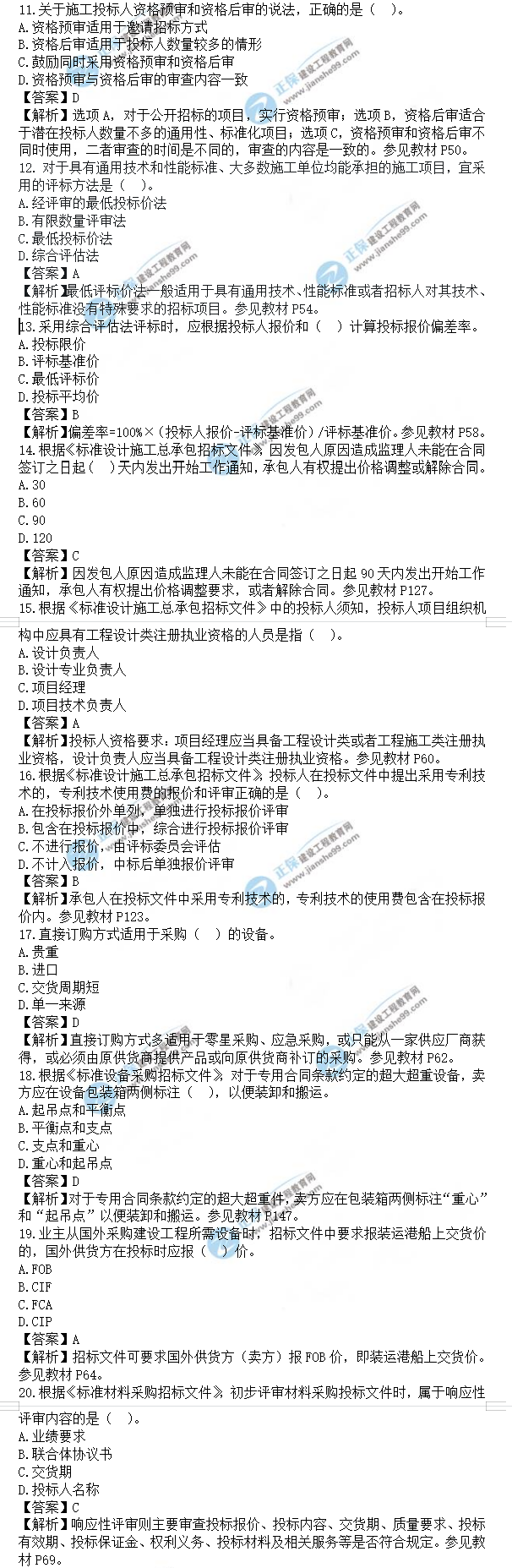 2021年監(jiān)理工程師合同管理試題及答案11-20題,建設工程教育網(wǎng)考后將會根據(jù)學員反饋進行匯總,考試過后,廣大考生最關(guān)心的問題莫過于2021年監(jiān)理工程師合同管理試題及答案11-20題了,網(wǎng)校會及時匯總2021年監(jiān)理工程師合同管理試題及答案分享給大家,并且做出答案解析,希望能為廣大監(jiān)理考生朋友帶來幫助。