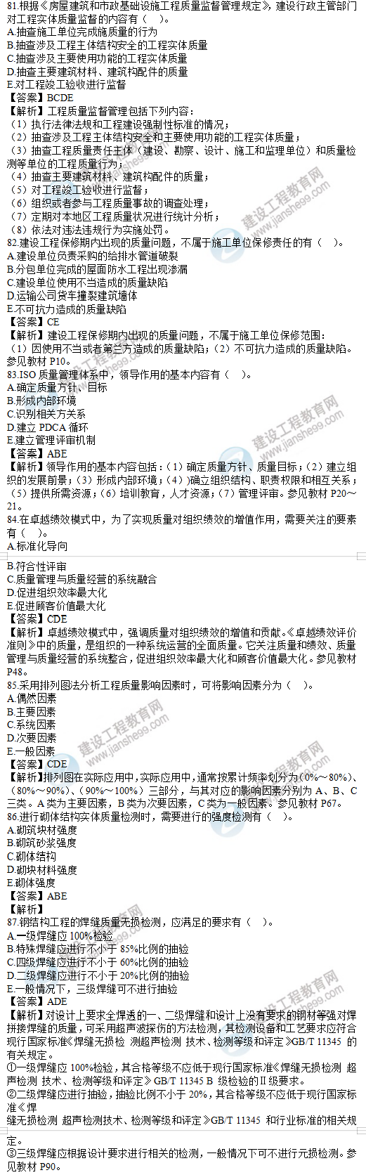 2021年監(jiān)理工程師土建控制試題及答案81-90題,建設(shè)工程教育網(wǎng)考后將會根據(jù)學(xué)員反饋進(jìn)行匯總,考試過后,廣大考生最關(guān)心的問題莫過于2021年監(jiān)理工程師土建控制試題及答案81-90題了,網(wǎng)校會及時(shí)匯總2021年監(jiān)理工程師土建控制試題及答案分享給大家,并且做出答案解析,希望能為廣大監(jiān)理考生朋友帶來幫助。