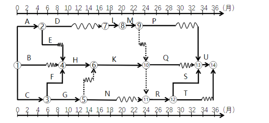 事件2:施工至第19個月末,進度檢查發(fā)現(xiàn),L工作拖后3個月,K工作正常,N工作拖后4個月。