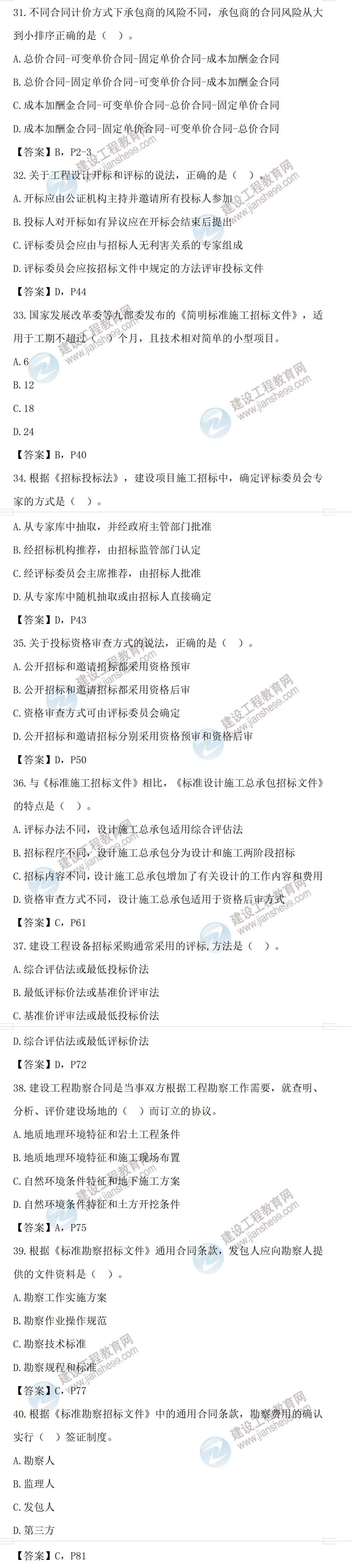 2022年監(jiān)理工程師合同管理考試及答案31-40題(補考)