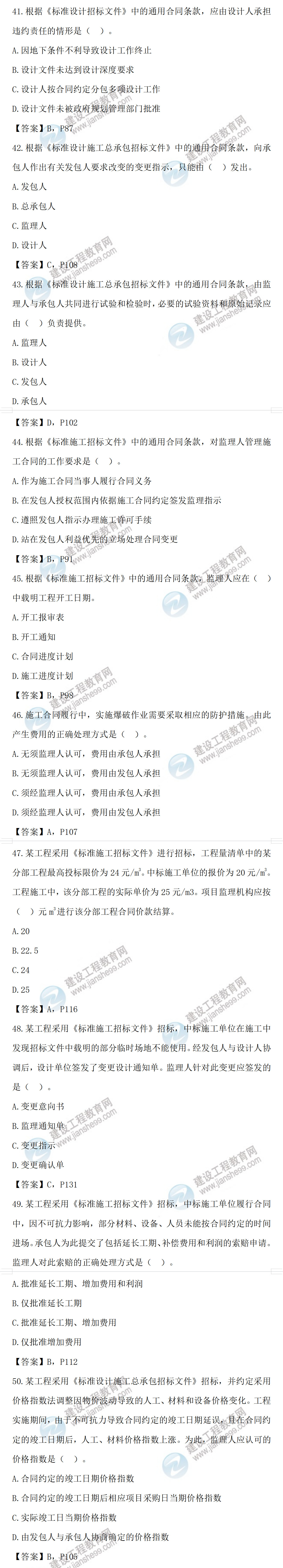 2022年監(jiān)理工程師合同管理考試及答案41-50題(補考)