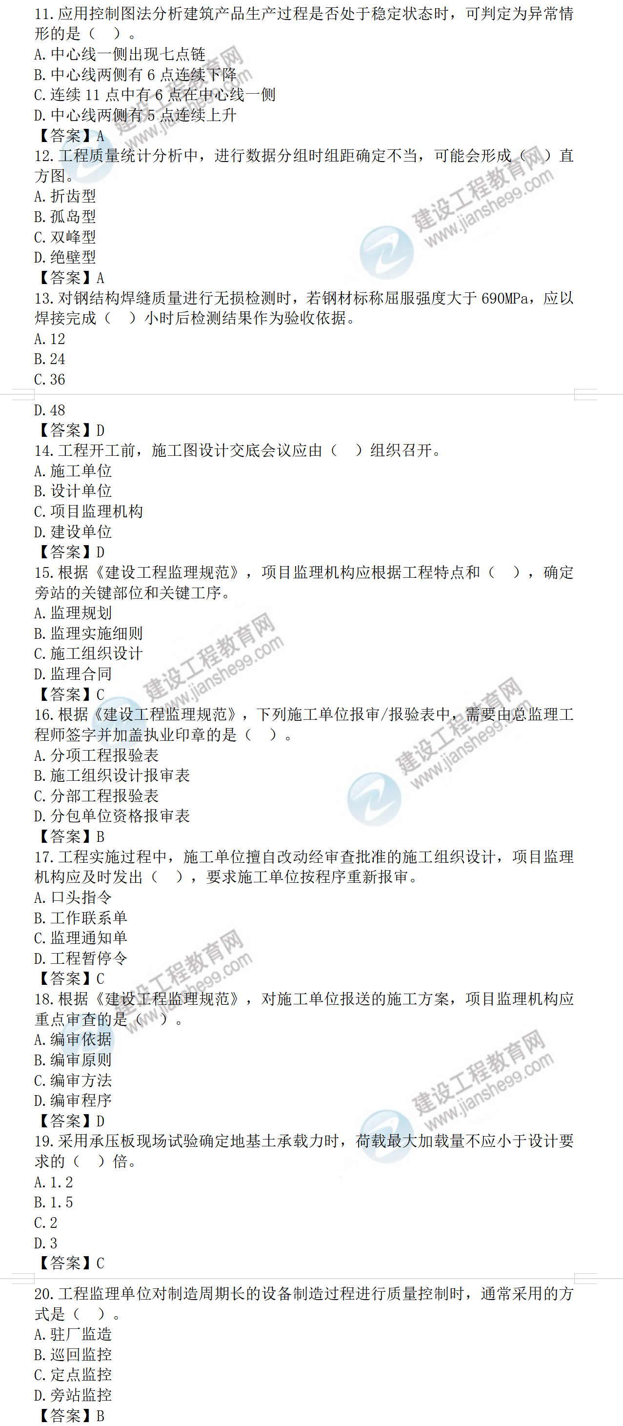 2022年監(jiān)理工程師目標控制土建考試答案11-20題(補考)