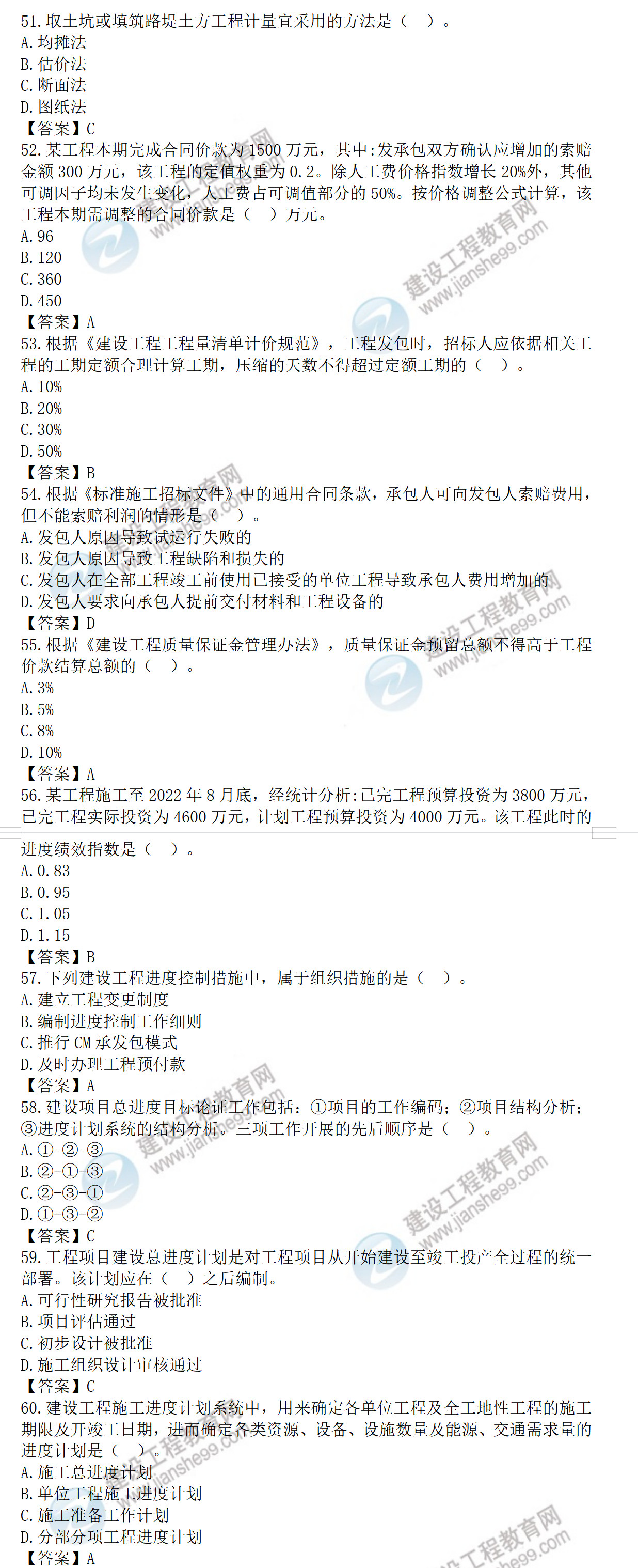 2022年監(jiān)理工程師目標(biāo)控制土建考試答案51-60題(補(bǔ)考)