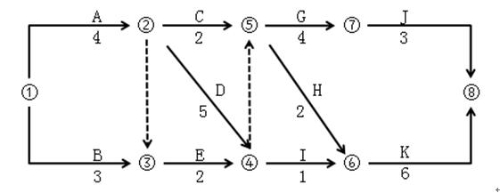 某工程雙代號(hào)網(wǎng)絡(luò)計(jì)劃如下圖所示,其中工作G的最早開始時(shí)間為( )。