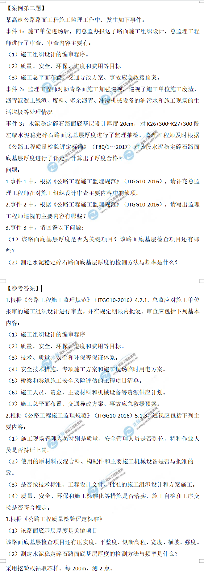 2021年監(jiān)理工程師交通案例試題及答案第二題
