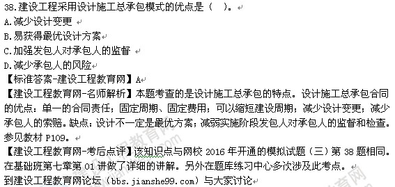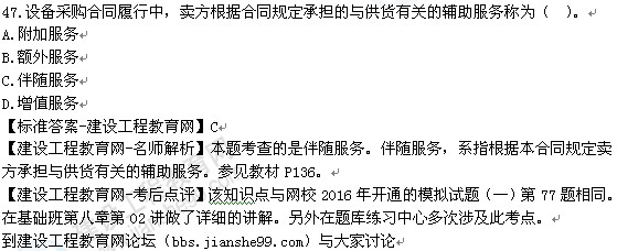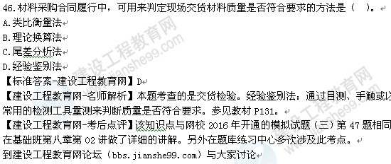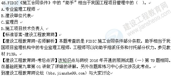 2016年監(jiān)理工程師《建設工程合同管理》答案及解析由老師整理而成,部分網站未經許可擅自轉載、抄襲,造成內容有所缺失或錯誤,請大家以建設工程教育網發(fā)布為準!