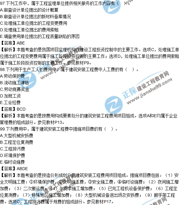 2018年監(jiān)理《建設(shè)工程質(zhì)量、投資、進(jìn)度控制》試題及答案多選(91-100)