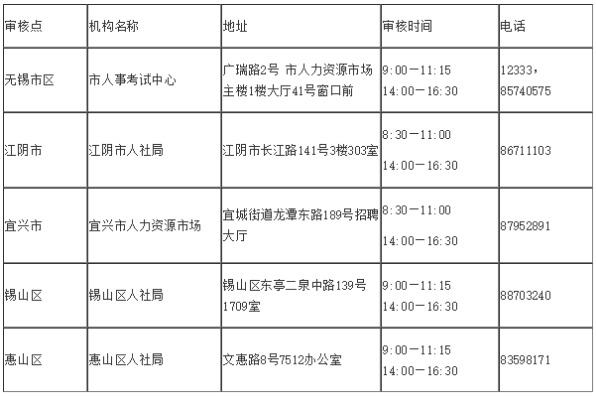 各審核點(diǎn)地址及審核時(shí)間: