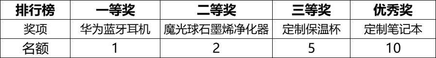| 排行榜 | 一等獎 | 二等獎 | 三等獎 | 優(yōu)秀獎 |