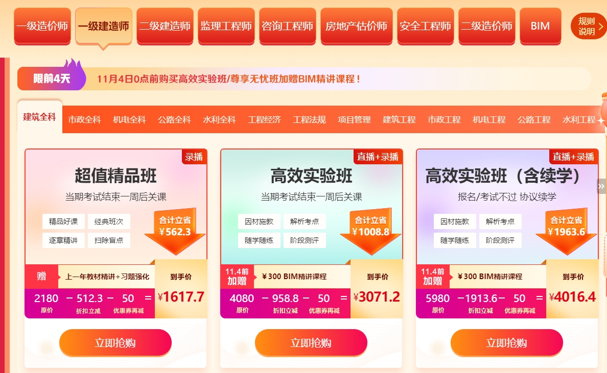 各位想要購買2024一建課程的學(xué)員們抓緊時(shí)間啦