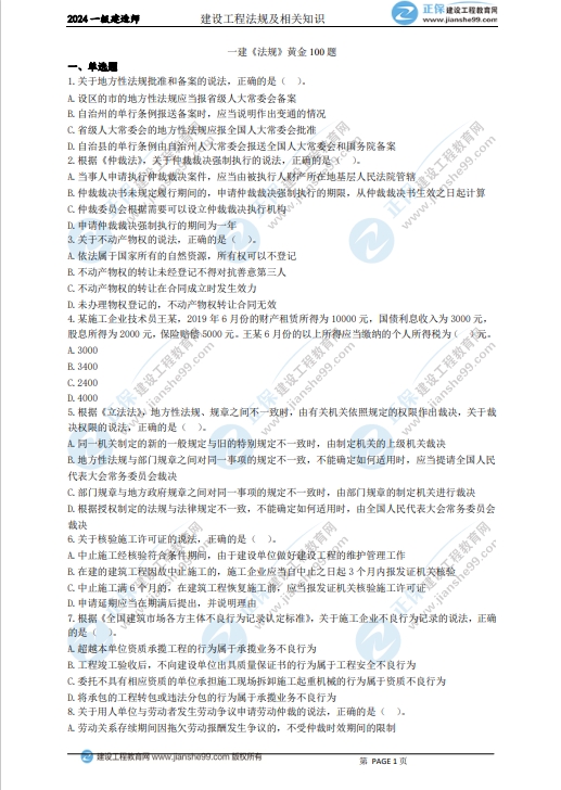 2024年一級(jí)建造師黃金100題+案例寶典免費(fèi)領(lǐng)取