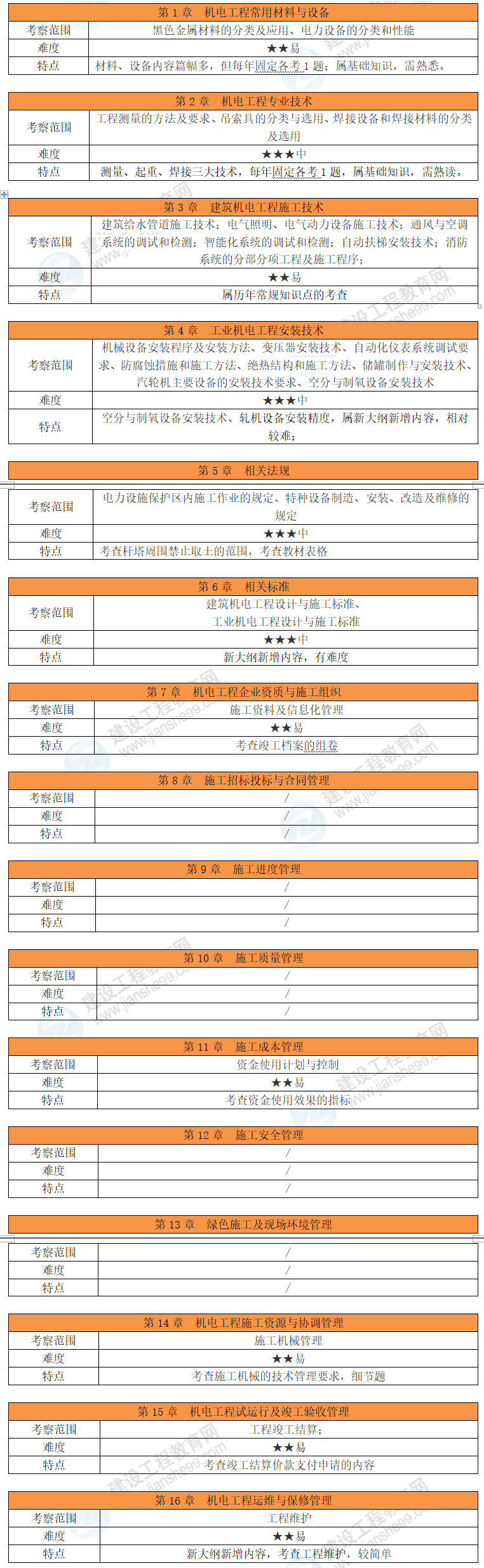 2024年建設(shè)工程教育網(wǎng)機(jī)電工程考試考情分析