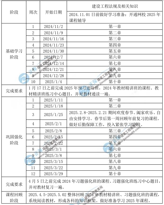 - · 2025年一級(jí)建造師工程法規(guī)學(xué)習(xí)計(jì)劃時(shí)間表