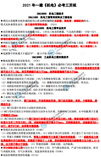 2021年一級(jí)建造師機(jī)電工程考前三頁(yè)紙