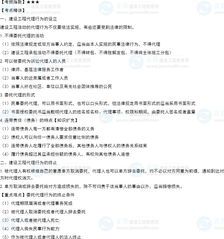 知識(shí)點(diǎn)1:建設(shè)工程代理行為的設(shè)立與終止