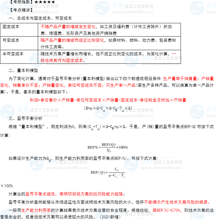 工程經(jīng)濟知識點5:盈虧平衡分析