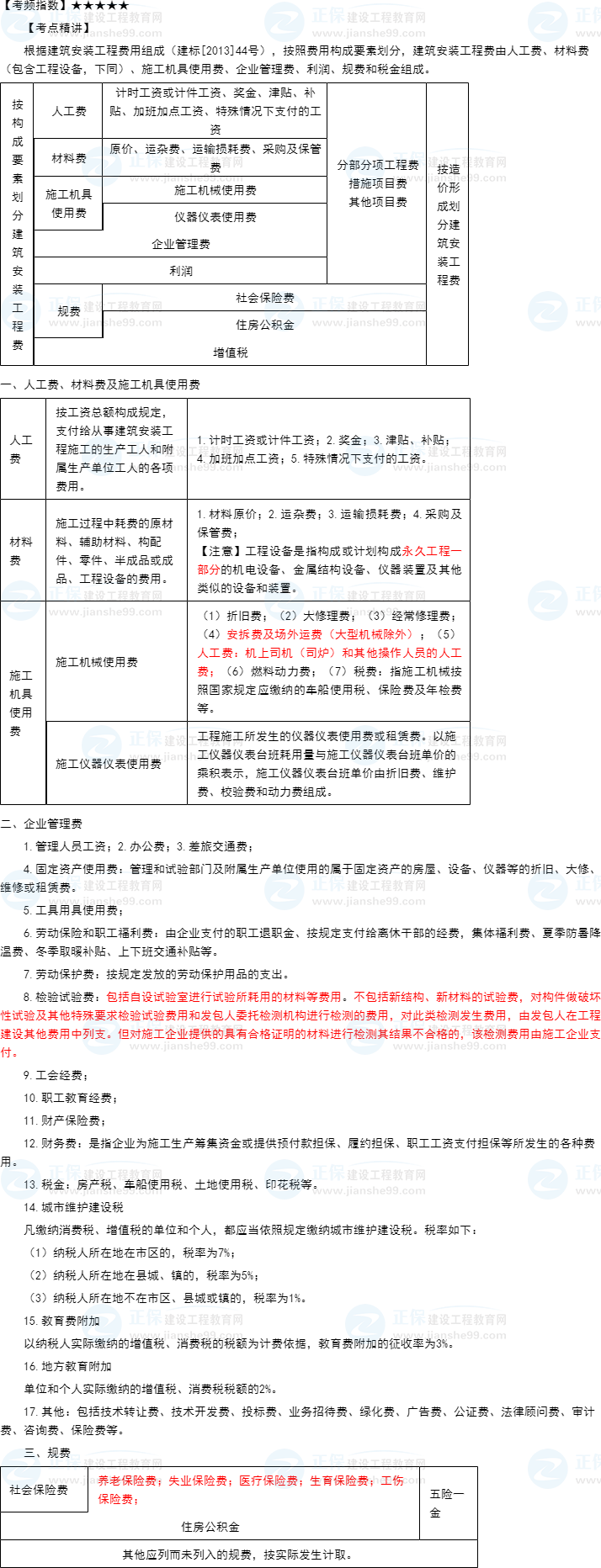 一建經(jīng)濟知識點17:按費用構(gòu)成要素劃分的建筑安裝工程費用項目組成