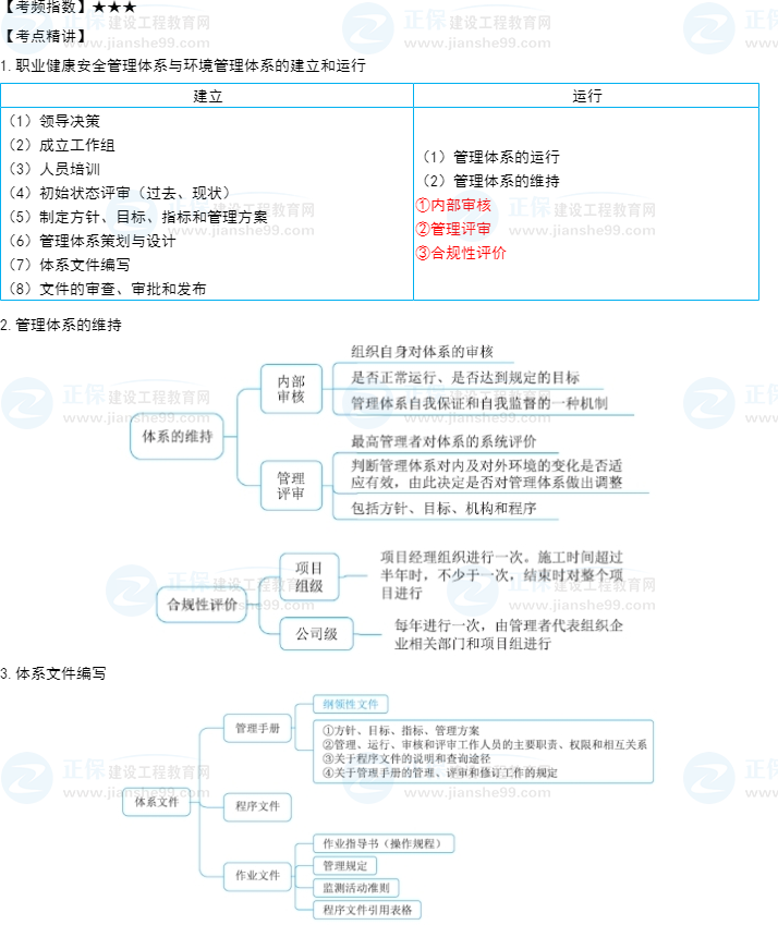 一建項(xiàng)目管理知識點(diǎn)23:職業(yè)健康安全管理體系與環(huán)境管理體系的建立和運(yùn)行