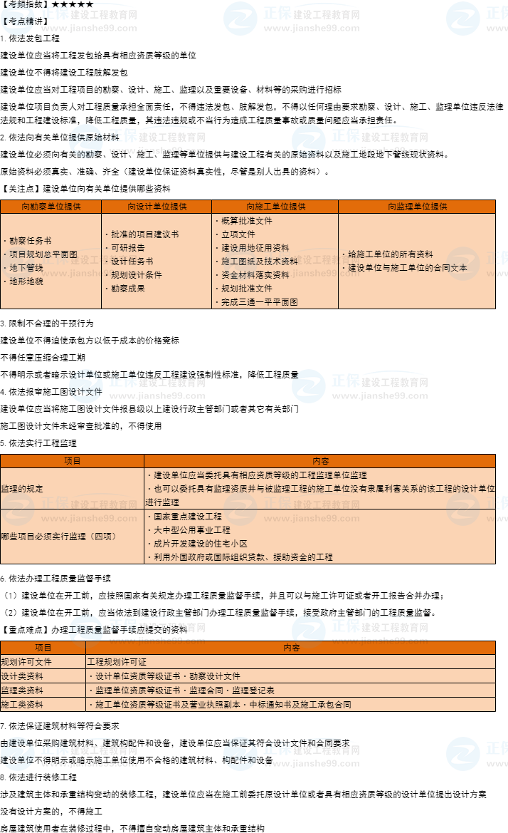 一建工程法規(guī)知識點24:建設單位的質量責任和義務