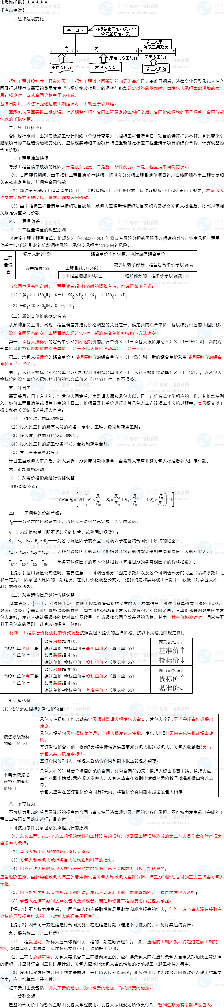 一級建造師考試工程經(jīng)濟知識點29:合同價款調(diào)整