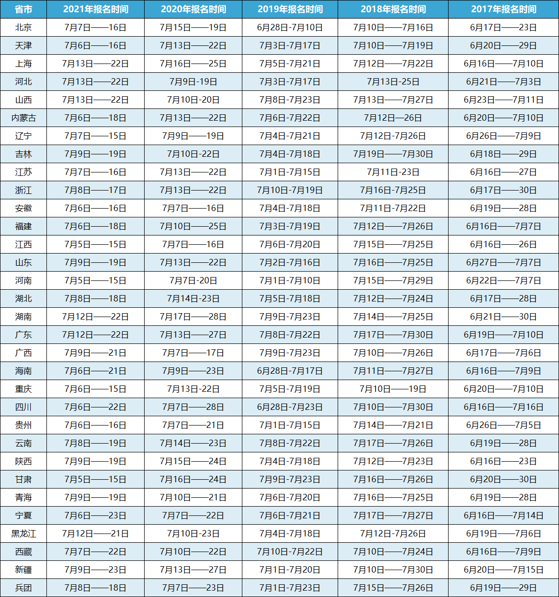 2017-2021年一建考試報(bào)名時(shí)間匯總