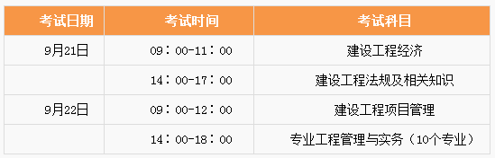 《建設(shè)工程經(jīng)濟(jì)》的考試時(shí)間為2小時(shí),《建設(shè)工程項(xiàng)目管理》、《建設(shè)工程法規(guī)及相關(guān)知識(shí)》的考試時(shí)間為3小時(shí),《專業(yè)工程管理與實(shí)務(wù)》的考試時(shí)間為4小時(shí)??忌仨氃谶B續(xù)的兩個(gè)考試年度內(nèi)通過(guò)全部科目的考試,方可獲得一級(jí)建造師資格證書(shū)。本次考試歷時(shí)兩天,考試時(shí)間安排如下: