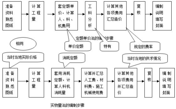 實物量法編制施工圖預(yù)算的步驟與定額單價法基本相似,但在具體計算人工費、材料費和機械使用費及匯總?cè)N費用之和方面有一定區(qū)別。實物量法編制施工圖預(yù)算所用人工、材料和機械臺班的單價都是當(dāng)時當(dāng)?shù)氐膶嶋H價格,編制出的預(yù)算可較準確地反映實際水平,誤差較小,適用于市場經(jīng)濟條件波動較大的情況。
