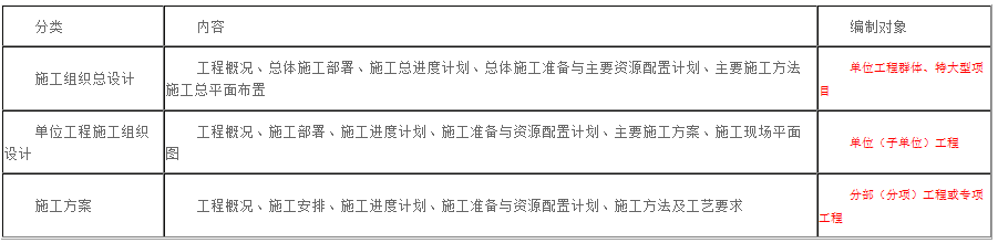 3.施工組織設計的分類及其內容