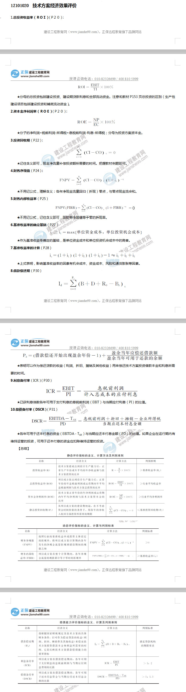 2019一級建造師工程經(jīng)濟公式匯總 :技術方案經(jīng)濟效果評價