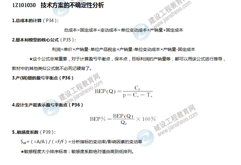 2019一級建造師工程經(jīng)濟公式匯總 :技術(shù)方案的不確定性分析