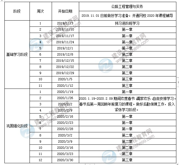 凡事預則立,不預則廢。2020年一級建造師備考黨即將來襲,你準備好了嗎?為幫助大家盡快適應《公路工程管理與實務》科目的學習,建設工程教育網針對該科目制定了2020年預習計劃表,以方便同學們對該科目的預習進度進行整體把握,希望這份計劃表對大家順利通過2020年的考試有所幫助。