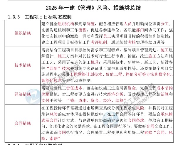 2025年一建《管理》風(fēng)險(xiǎn)、措施類總結(jié):