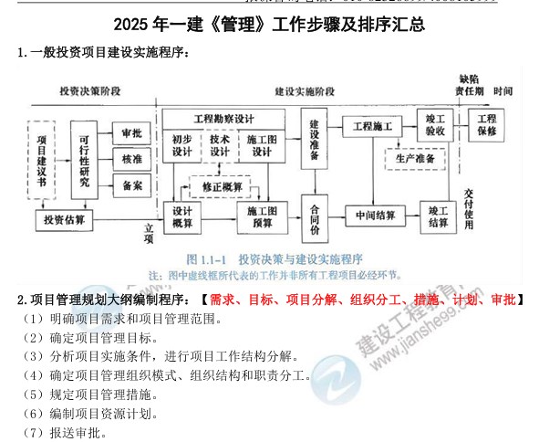 2025年一建《管理》工作步驟及排序匯總: