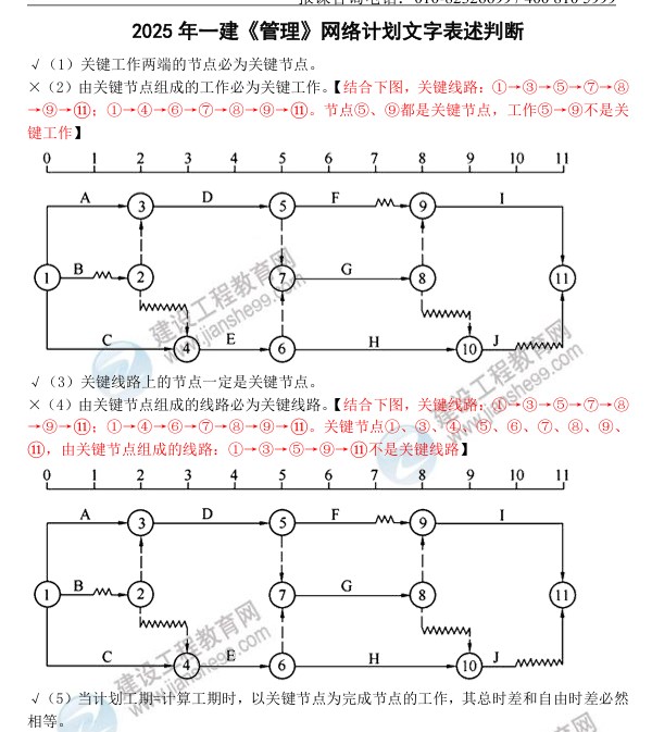 2025年一建《管理》網(wǎng)絡(luò)計(jì)劃文字表述判斷: