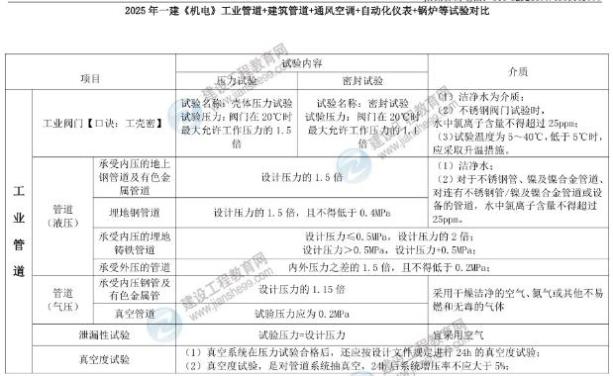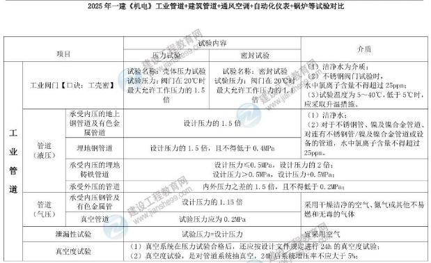 2025年一建《機(jī)電》工業(yè)管道+建筑管道+通風(fēng)空調(diào)+自動(dòng)化儀表+鍋爐等試驗(yàn)對(duì)比: