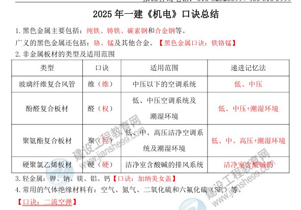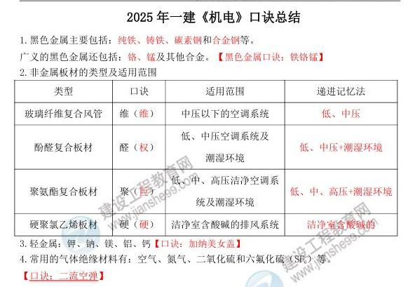 2025年一建《機(jī)電》口訣總結(jié):