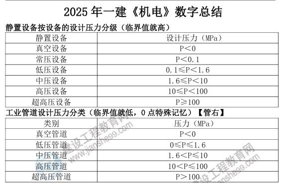 25年一級(jí)建造師《機(jī)電工程》數(shù)字、知識(shí)點(diǎn)總結(jié)