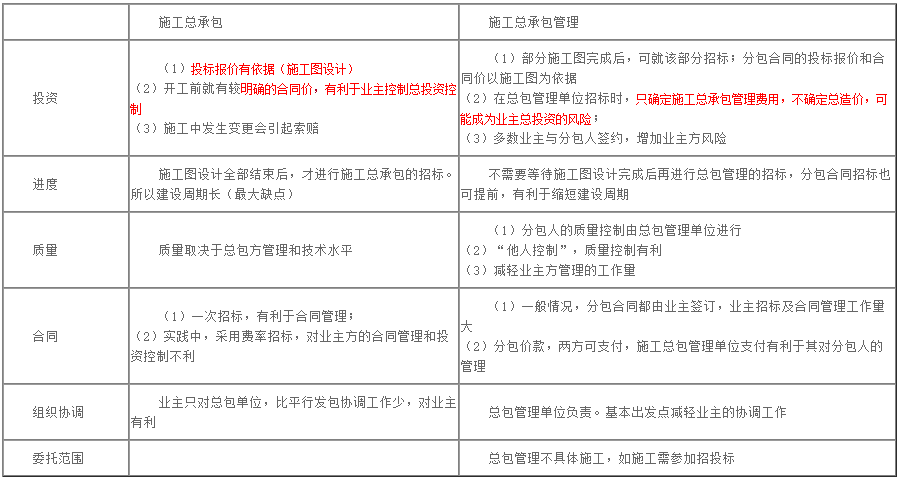 施工任務委托模式:施工總承包,施工總承包管理,平行委托。