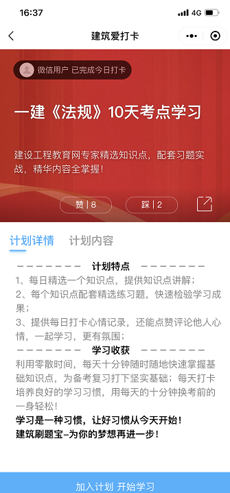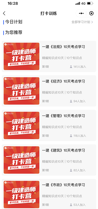 想要鞏固一級(jí)建造師知識(shí)點(diǎn),加深記憶,提升做題效率,小編為您推薦一級(jí)建造師打卡小程序,知識(shí)點(diǎn)+習(xí)題相結(jié)合,希望考生能緊跟步伐,不掉隊(duì)!