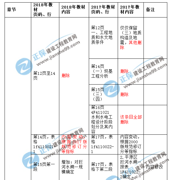 2018一級(jí)建造師《水利水電工程》新舊教材對(duì)比解析匯總
