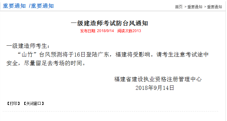 “山竹”臺風(fēng)預(yù)測將于16日登陸廣東,福建將受影響。請考生注意考試途中安全,盡量留足去考場的時(shí)間。