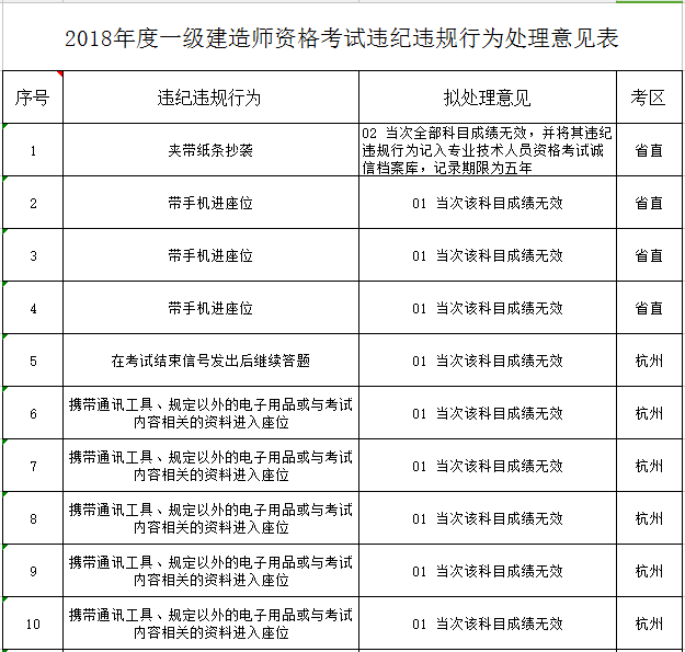 根據(jù)《專業(yè)技術(shù)人員資格考試違紀違規(guī)行為處理規(guī)定》(人力資源和社會保障部令第31號,簡稱第31號部令)第十七條規(guī)定,現(xiàn)將各考區(qū)對2018年9月進行的一級建造師資格考試中已認定違紀違規(guī)考生的考試違紀違規(guī)行為擬處理意見公告如下,考生如對所認定的違紀違規(guī)事實存在異議,可在公告之日起5個工作日內(nèi)向各考區(qū)陳述和申辯。逾期未陳述申辯的,將依法依規(guī)作出正式處理決定。