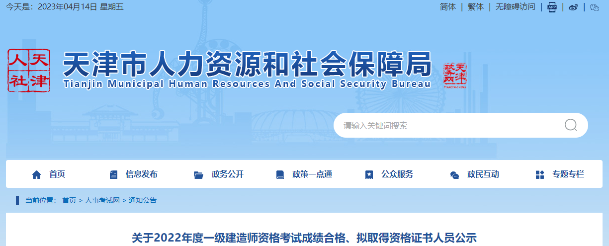 天津市關(guān)于2022年度一級(jí)建造師資格考試擬取得資格證書人員公示