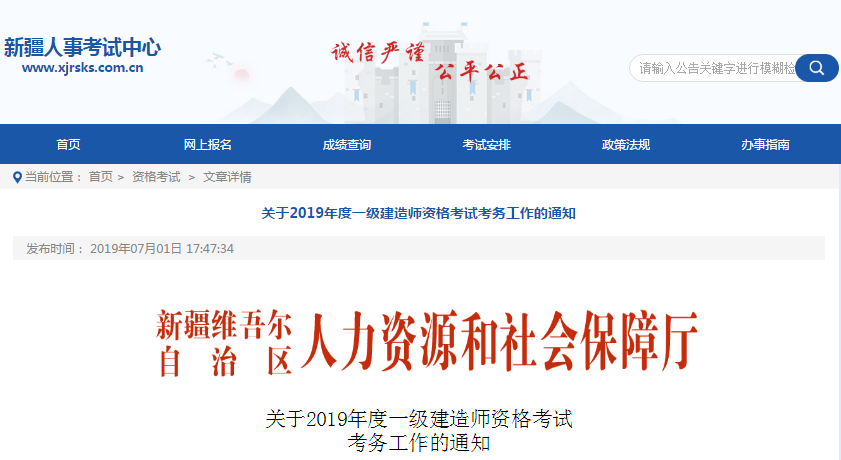 根據(jù)新疆人力資源和社會保障廳發(fā)布的《關(guān)于2019年度一級建造師資格考試考務(wù)工作的通知》可知,2019年新疆一級建造師報名時間已從7月1日10:00時開始,報名截止時間為7月20日19:00時。新疆的考生可登錄中國人事考試網(wǎng)()進(jìn)行報名。