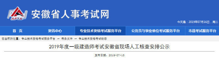 2019年度一級(jí)建造師考試安徽省現(xiàn)場(chǎng)人工核查安排公示