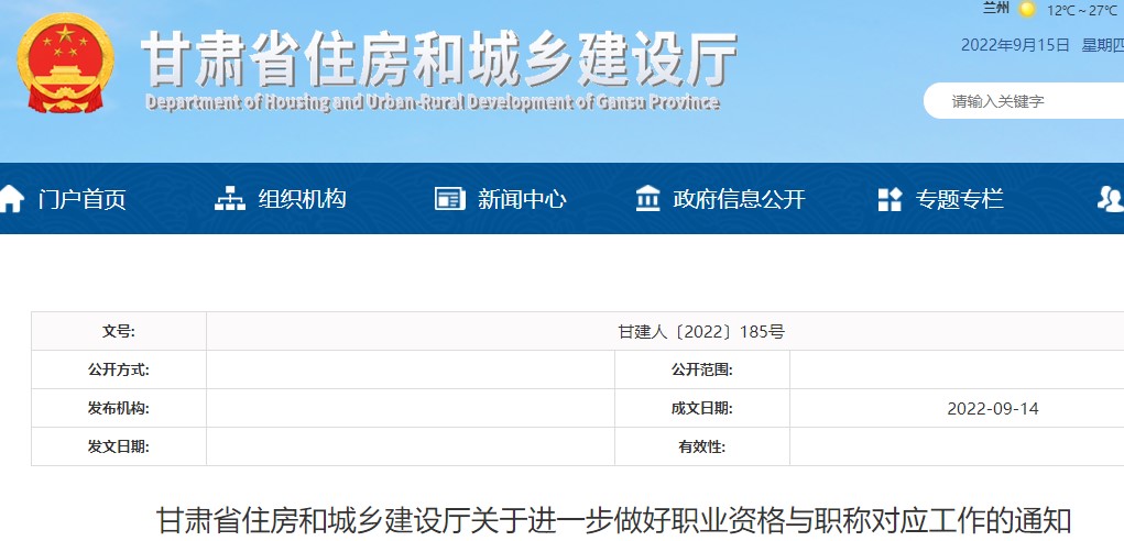 甘肅省住房和城鄉(xiāng)建設(shè)廳關(guān)于進一步做好職業(yè)資格與職稱對應(yīng)工作的通知