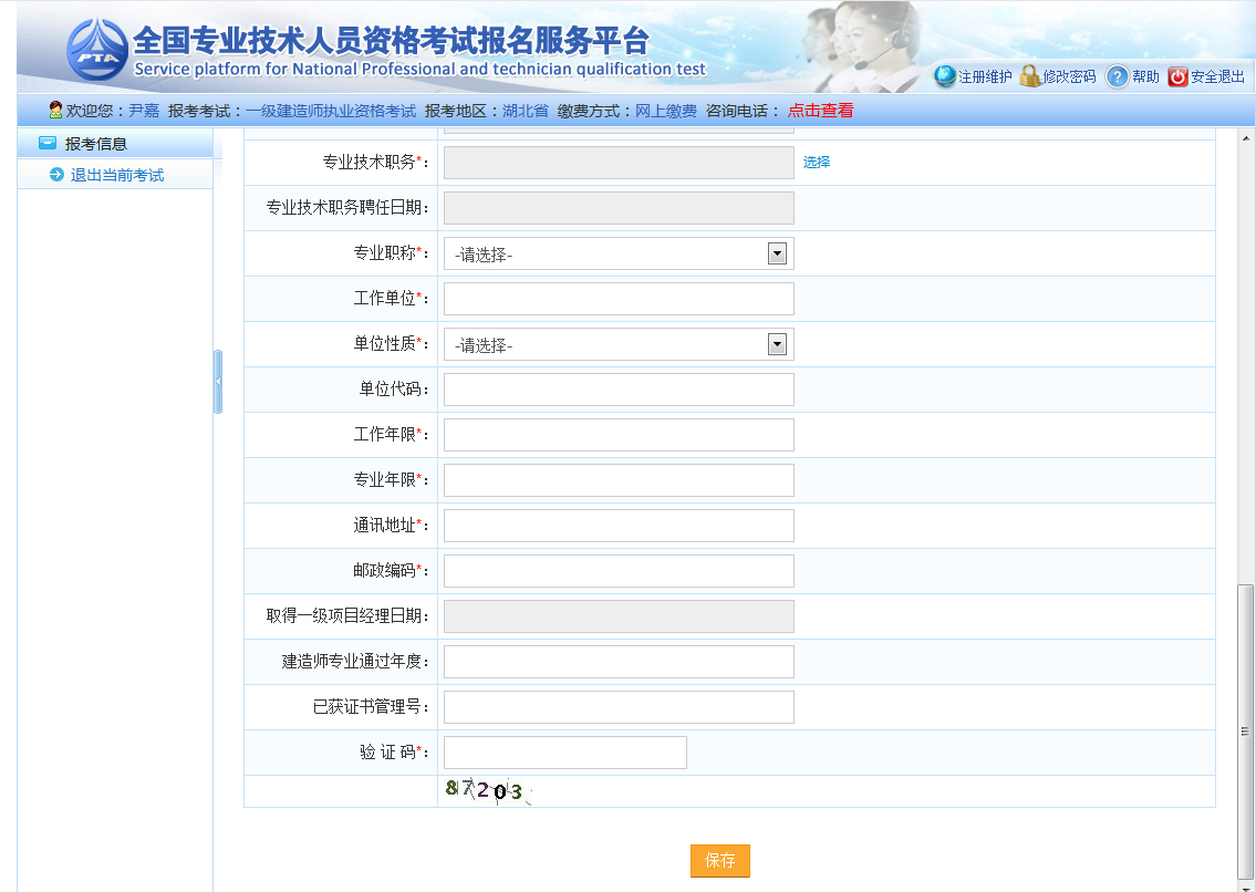 考生填完報(bào)名信息后點(diǎn)擊保存按鈕,完成報(bào)名。
