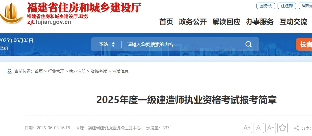 福建省住房和城鄉(xiāng)建設(shè)廳發(fā)布2025年度一級(jí)建造師執(zhí)業(yè)資格考試報(bào)考簡(jiǎn)章,具體信息如下: